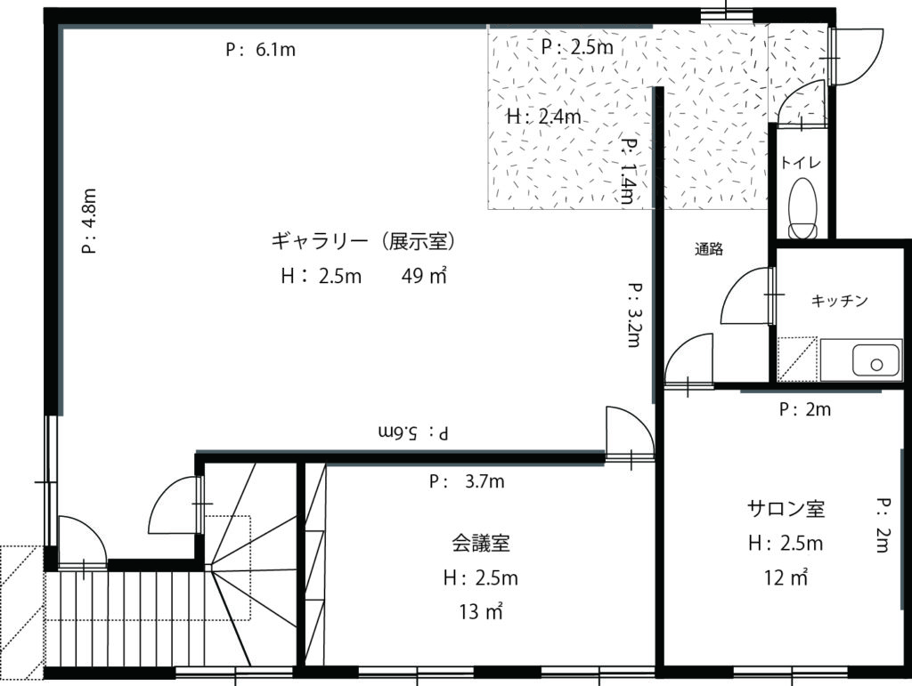 | 広さ | ギャラリー(58㎡)+サロン室(13㎡) |