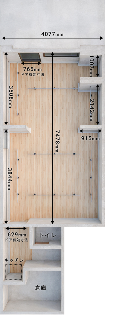 | 設備/備品など | 部屋の隅々にライティングレール、ピクチャーレールを設置しています。 |