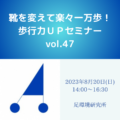 - 2023.08.20 - 2023.08.20【靴を変えて楽々一万歩!歩行力UPセミナーvol.47】開催のお知らせ
