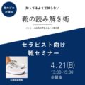 - 2024.04.21 - 2024.04.21【靴の読み解き術〜セラピスト向け靴セミナー】開催のお知らせ