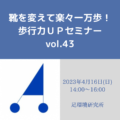 - 2023.04.16 - 2023.04.16【靴を変えて楽々一万歩!歩行力UPセミナーvol.43】開催のお知らせ