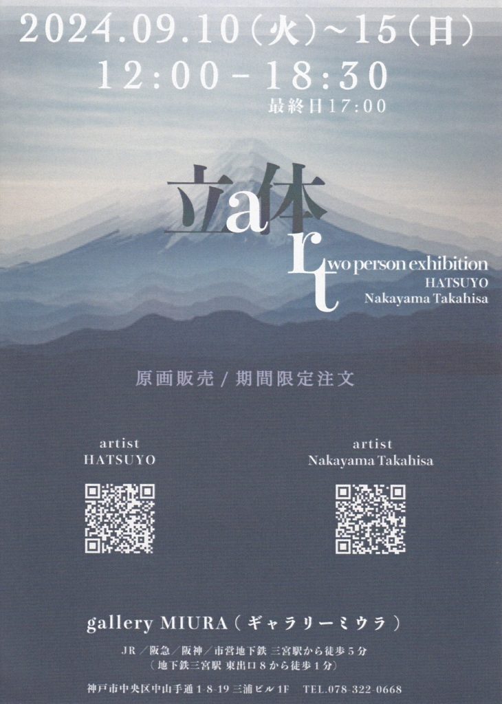 - 2024.09.10 - 2024.09.15立体art Two person exhibition HATSUYO(つまみ細工) Nakayama Takahisa(アクリル画)