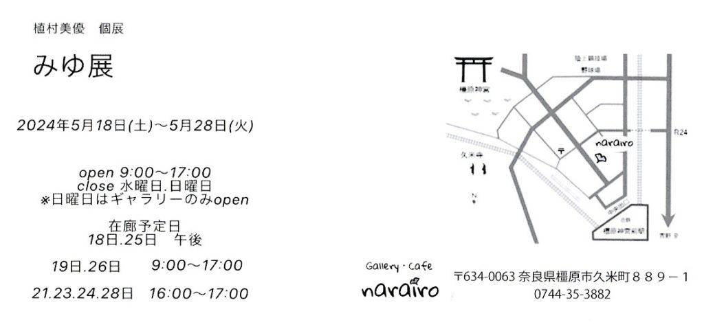詳細:https://narairo.com/miyu-solo-exhibition/