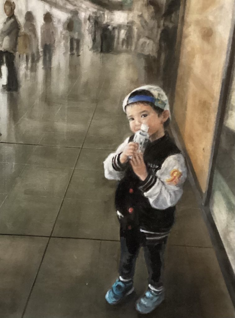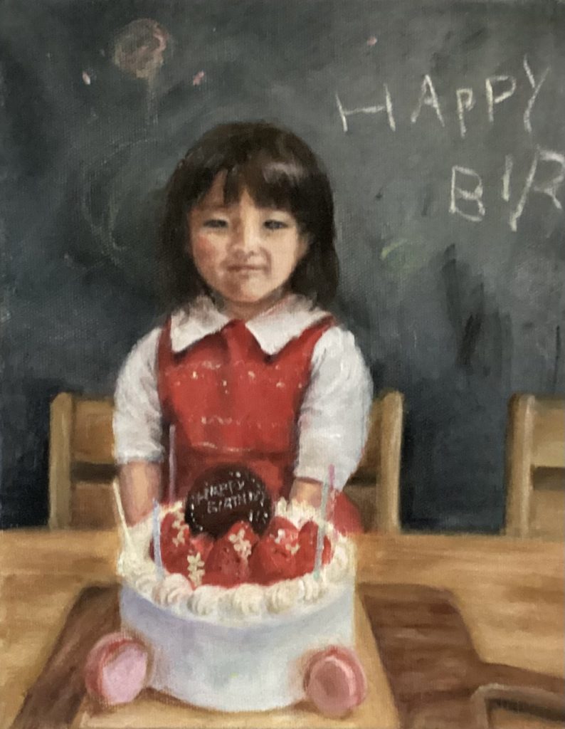 日常にすっと溶け込む絵を描くことが私にとっての目標です。当たり前ですが全て実在する子どもたちですし、日々成長していくので「姿かたち」はどんどん変わっていきます。それは「音をたてて」と思うくらいの変化です。子どもの一日はとても大きい一日だといつも思います。その子たちの一瞬の「カタチ」の中に少しでもその時の息遣いが感じられるといいなと思いながら制作しています。