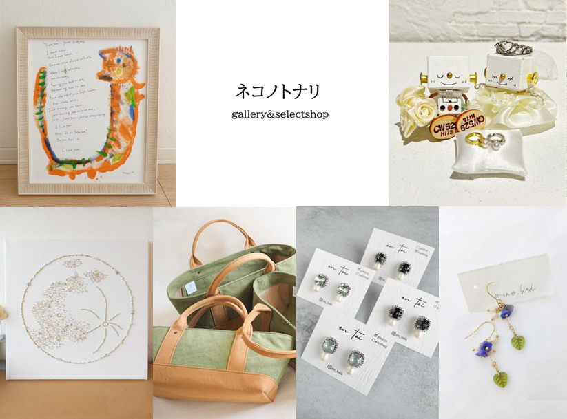 5月上旬open予定のgallery&selectshop「ネコノトナリ」をイメージし、4名の作家様をゲストに個展を開催いたします。