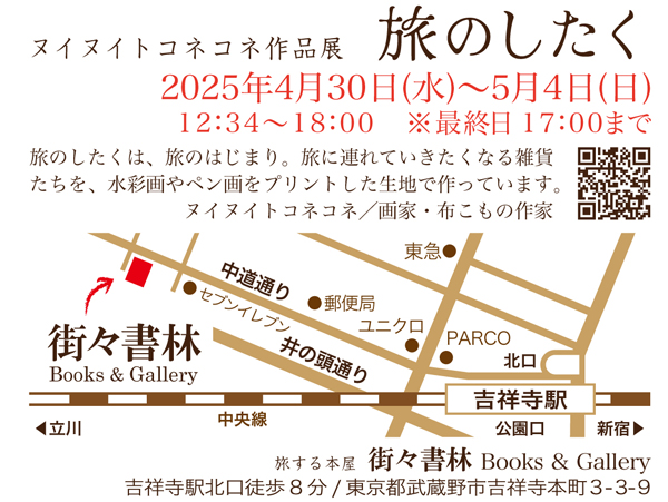 - 2025.04.30 - 2025.05.04ヌイヌイトコネコネ作品展「旅のしたく」展