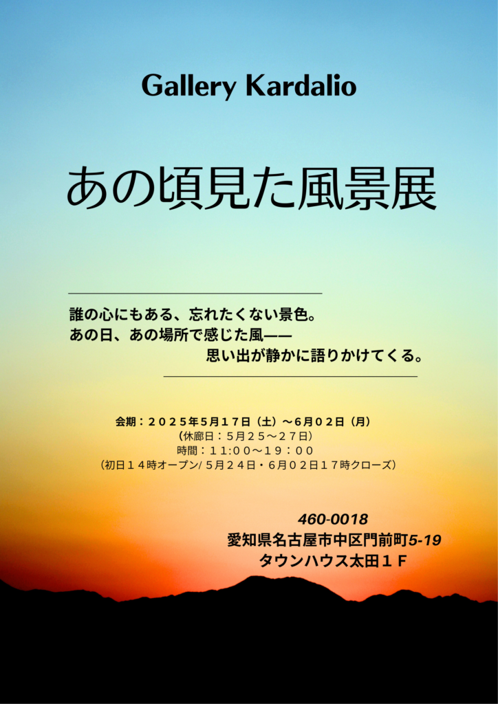 - 2025.05.17 - 2025.06.02あの頃見た風景展