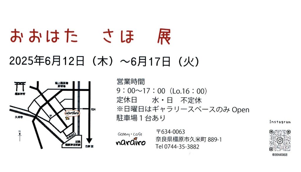 - 2025.06.12 - 2025.06.17おおはた さほ 展 6/12(木)~6/17(火)