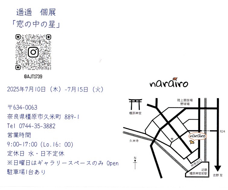 - 2025.07.10 - 2025.07.15遥遥 個展『窓の中の星』7/10(木)~7/15(火)