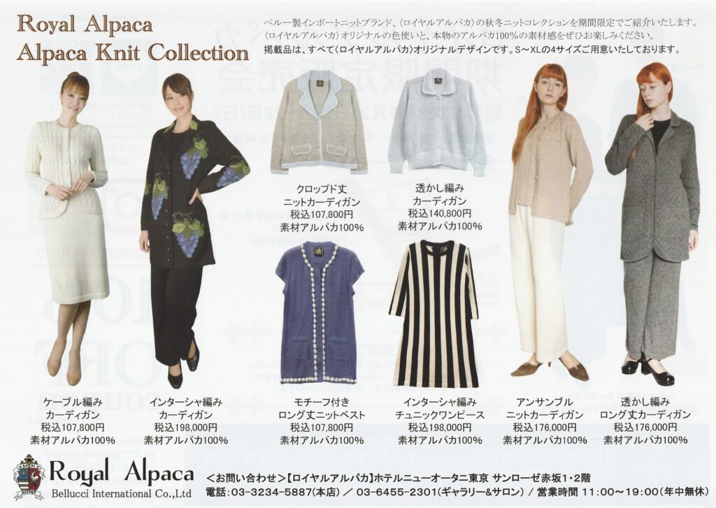 ペルー大統領からの厚い頼もある、<ロイヤルアルパカンのニットアイテムは、日本全国のお客様からも永く愛用されております。