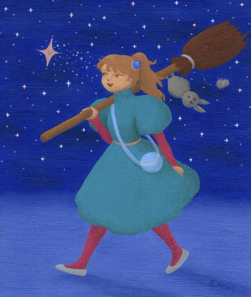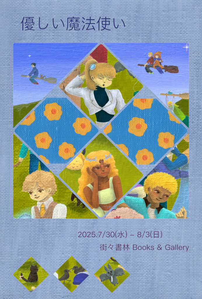 「優しい魔法使い」というタイトルで、作品展示をします。少し大きめのものから、小さいドローイングまで、油彩作品を数点展示します。これまでは、地球とは違う星に住む人々や、風景を描いていましたが、ここ数年、魔法の世界の絵を描いています。この世界もまた、地球ではない、魔法が存在する星、と考えて描いています。その魔法の星の、人々や動物たちの絵を展示します。優しく、温かく、自由な心を持った魔法使いたち。そんな魔法使いが住む世界を、ぜひ見に来てください。