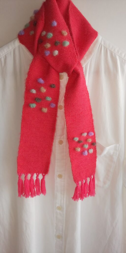 手織り:マフラー、コースターなど