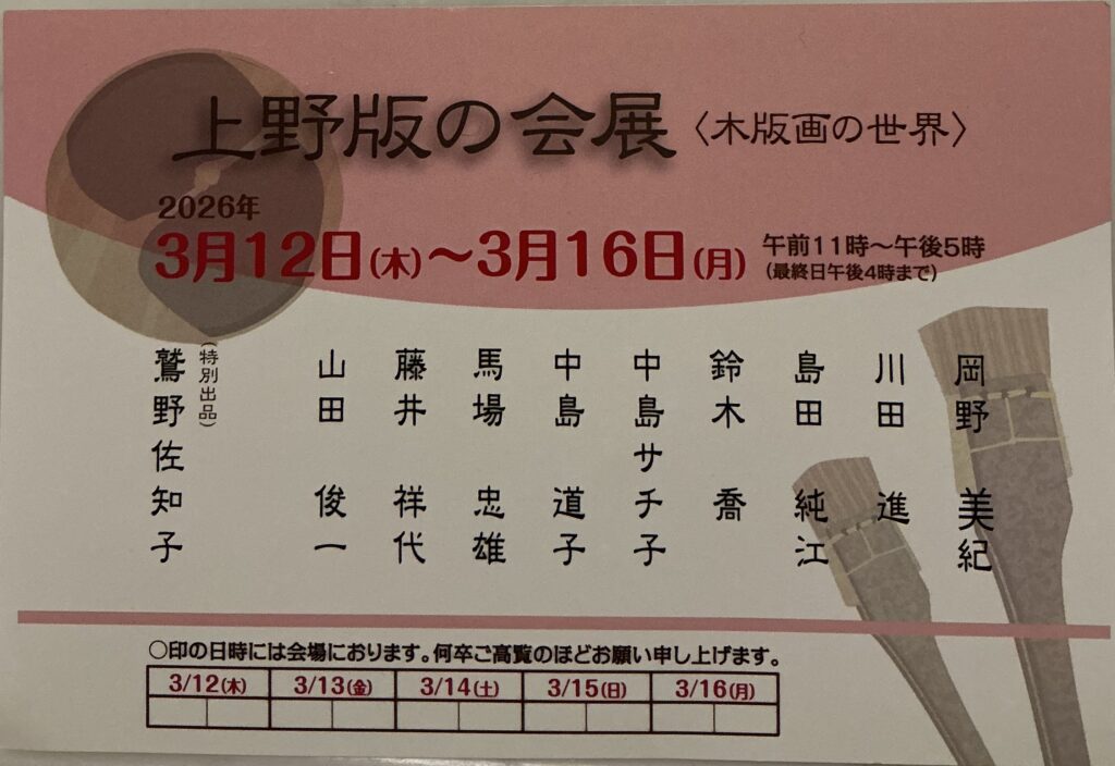 - 2026.03.12 - 2026.03.16上野版の会展〈木版画の世界〉
