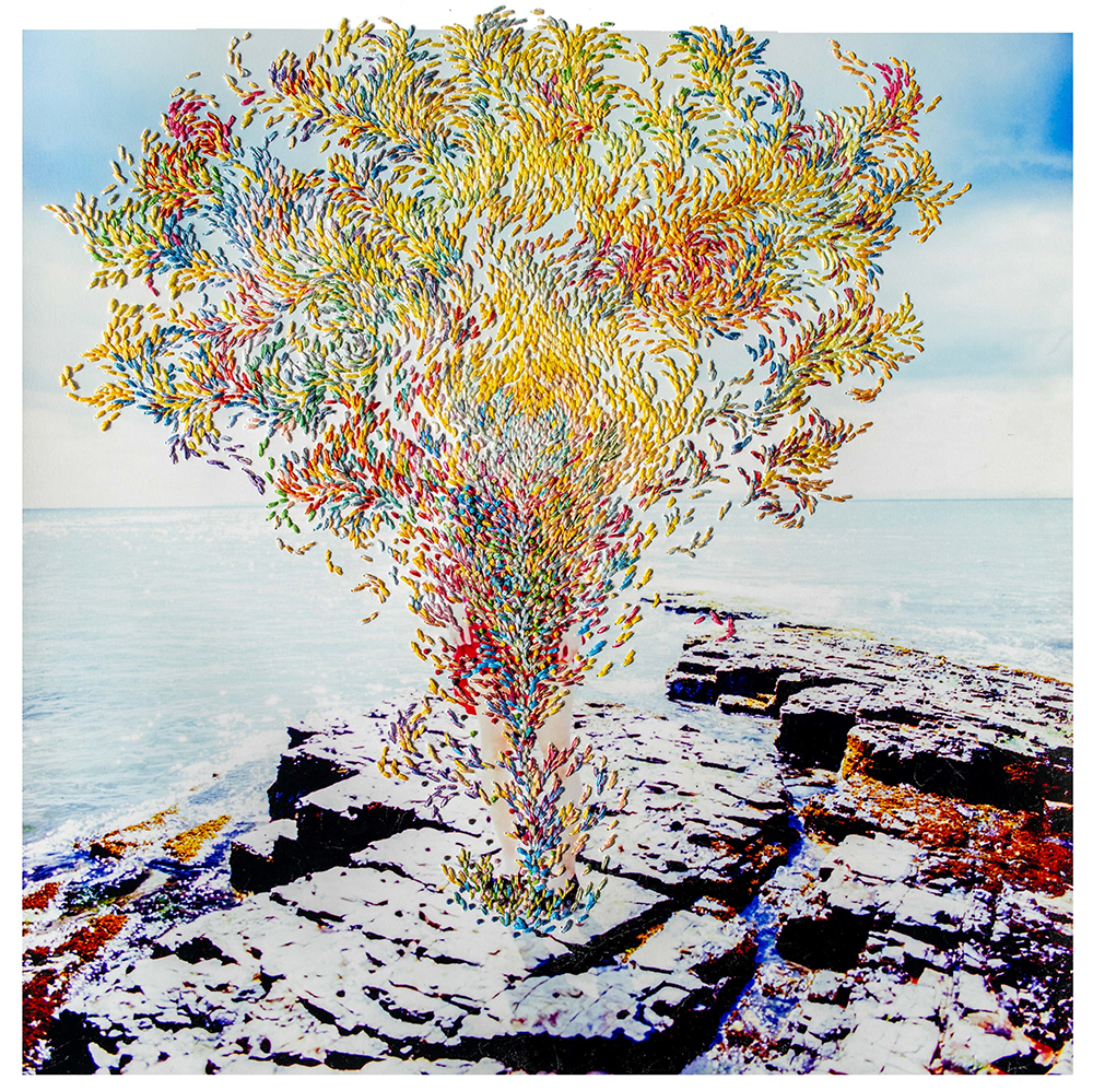一方で澄にとっての写真は忘却の抵抗だ。いつか生を失ったものが忘れられ光となり「実体」を失うことに抗うように、澄は写真がプリントされた紙に刺繍を施す。糸により立体としての質量を持つ時、そこには「永遠」の片鱗がある。