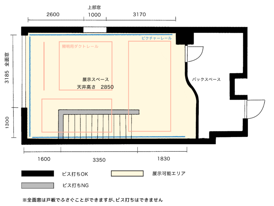 個展として作品を展示することはもちろん、ワークショップやイベント、仲間とのオフ会など、あなたの”好き”を表現・共有する場として自由にご活用ください。