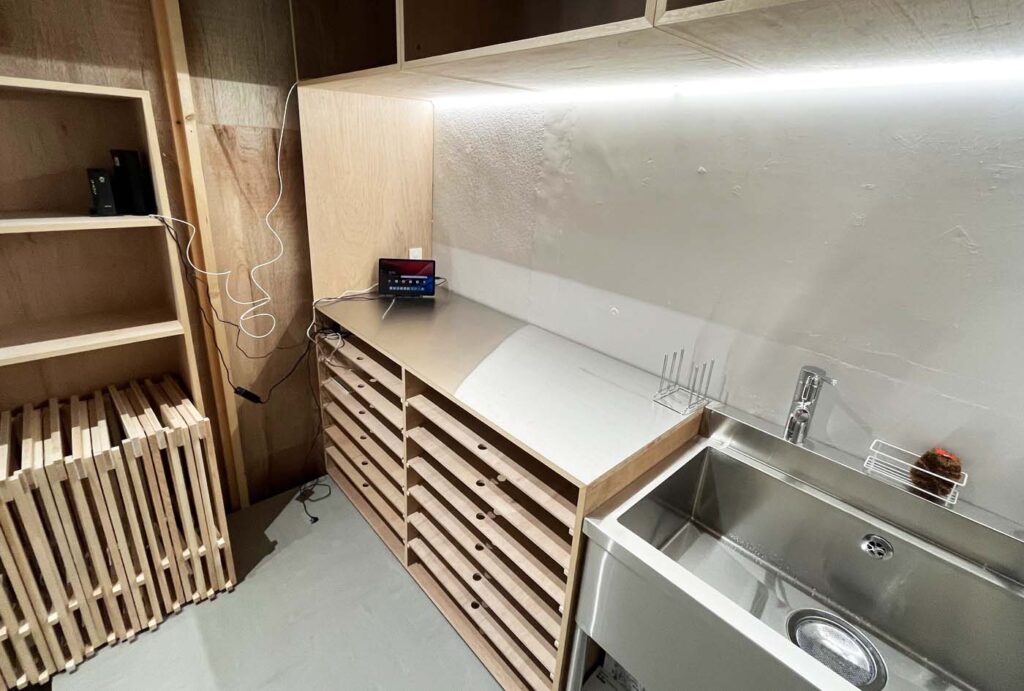 ギャラリースペースに加え、バックヤードには作業台や大型シンクを備え、